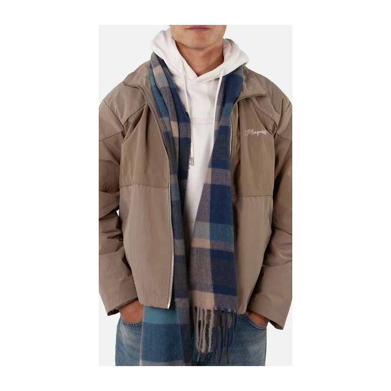Soft men's scarf made from 80% recycled polyester with a checkered pattern. This product will gradually become softer. Please note that it may leave fibers on your clothing. Dimensions: 180 x 30 cm (length x width).
