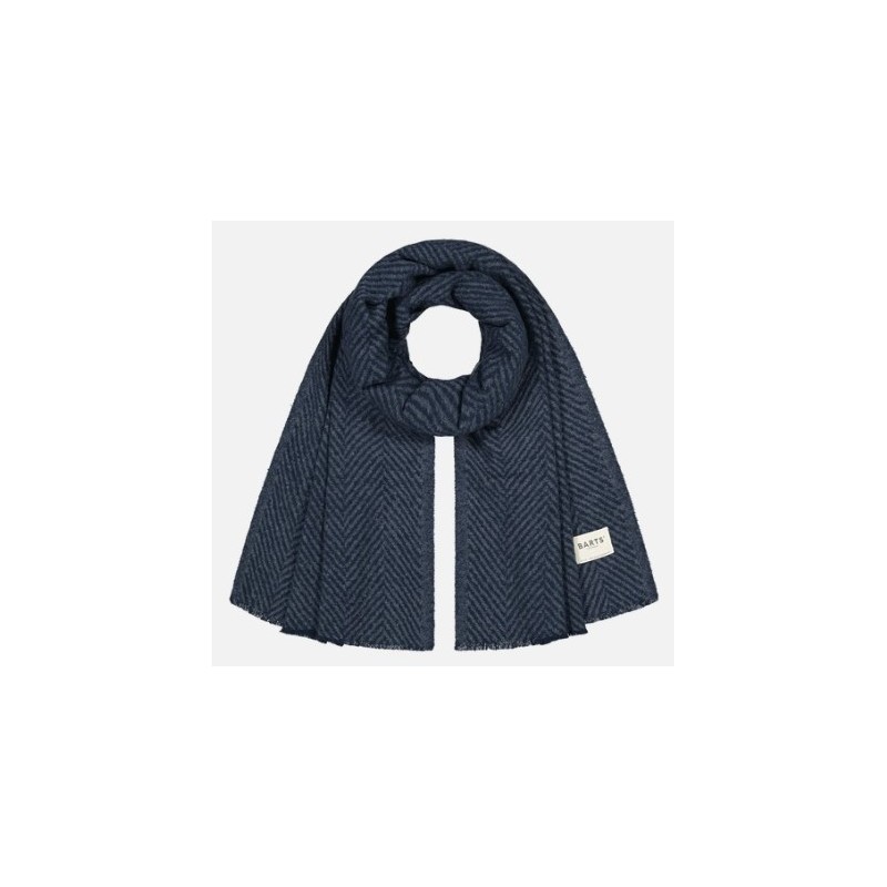 Men's woven scarf, 50% recycled polyester, herringbone pattern, short fringes. Dimensions: 190 x 54 cm (length x width).