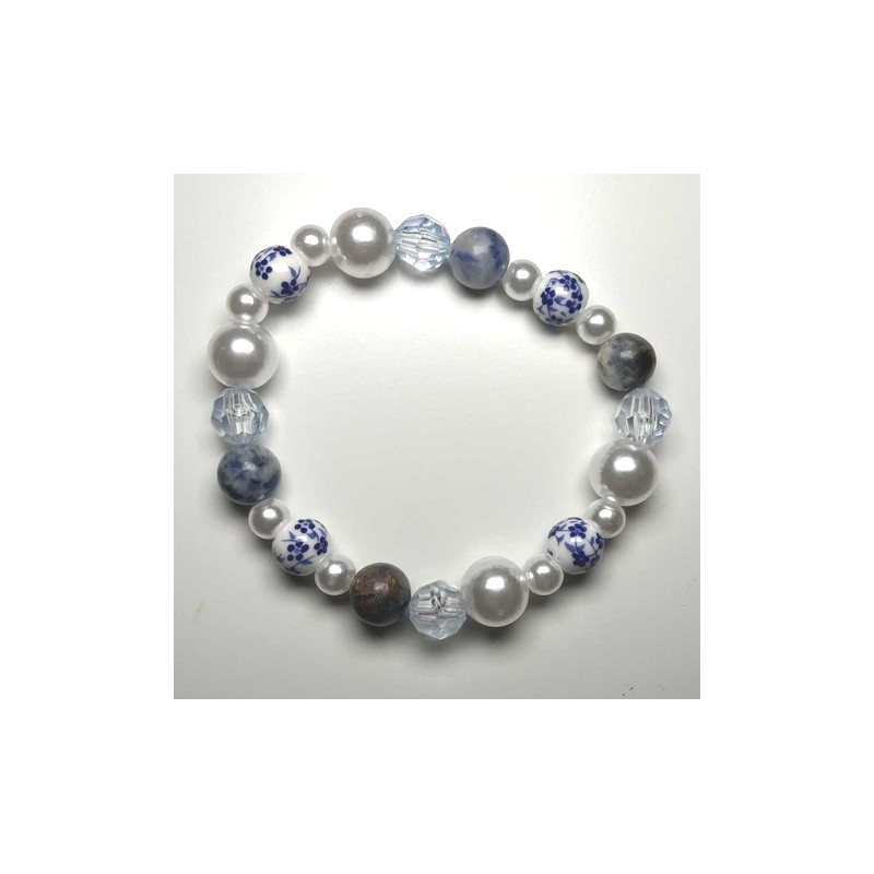 Composition: Natural Blue Pearls, Blue Ceramic Beads, Clear Acrylic Beads, White Artificial Pearls
