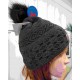 HIGHLANDS CROSS Roselyn Women's Beanie Fake Fur Pompon Grey