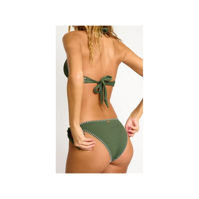 • Two-piece swimsuit • Textured fabric • Triangle top • Removable cups • Ties at the neck and back • Classic-cut tie-back briefs Elegant and timeless two-piece swimsuit. This swimsuit offers optimal comfort thanks to its fitted cut and high-quality materials. The color enhances your tan while ensuring a refined look. Perfect for sunny days at the beach or by the pool. Main material: Polyamide 92%, Elastane 8% / Lining: Polyamide 83%, Elastane 17% To care for and maintain your favorite swimsuit, we recommend: Using a towel to sit on: avoid contact with concrete, wood, or stones (pool deck). The fibers used in the making of this swimsuit are soft and pleasant to the skin, but can be damaged by contact with such surfaces. Rinse your swimsuit after each use: We recommend rinsing your swimsuit thoroughly in clean water after each use. Do not machine wash your swimsuit: we recommend hand washing without detergent or other abrasive products such as stain removers. Instead, use a detergent for delicates or a simple soap. Never leave your wet swimsuit in its pouch: the prints may discolor if the swimsuit is left rolled up or folded while still wet. For embellishments or special materials (pearls, shells, crystals, etc.): avoid rubbing, twisting, or overstretching the fabric to which they are attached.