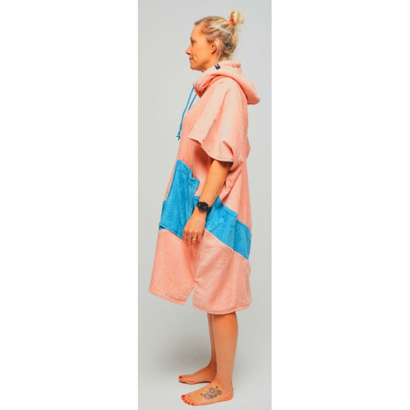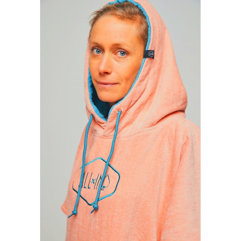 Thanks to its triangular or “V” shape, the top of this poncho is wider than on our Classic models. And still just as soft and comfortable (100% cotton velor sponge)! All-In has created this poncho to guarantee you greater freedom of movement in the arms and shoulders. More practical for changing and retained warmth thanks to the elongated sleeves, a lined hood and 2 large side pockets.