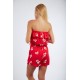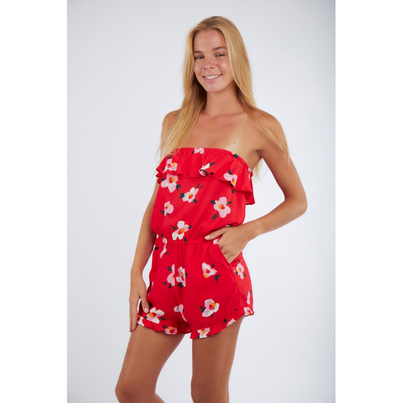 Strapless playsuit, red with white flowers, GATLIN SUNNYSIDEDAY.