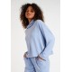 Sky blue Keeper Wilshire sweater from the Banana Moon winter collection. This sweater is very easy to wear. Simple and very soft to the touch, you will love wearing it at home for a pampering day or during casual walks. Its cowl neck will keep you warm throughout the winter season. Pair it with the Quick Wilshire bottoms for a total look!