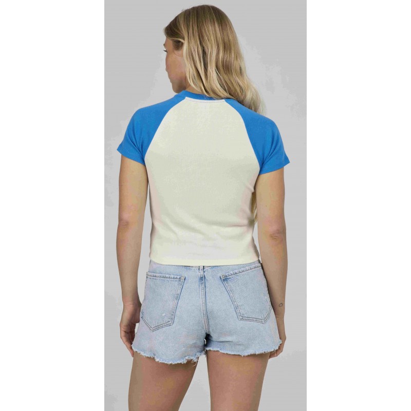 Contrasting Bold Blue sleeves for a vintage "baseball" look.
