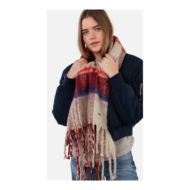 Écharpe classique BARTS pour femme 85 % polyester recyclé Douce et chaude Motif joyeux aux multiples couleurs Ce produit prendra progressivement un aspect moelleux. Attention, il peut laisser des fibres sur vos vêtements. Dimensions : 180 x 50 cm (longueur x largeur).
