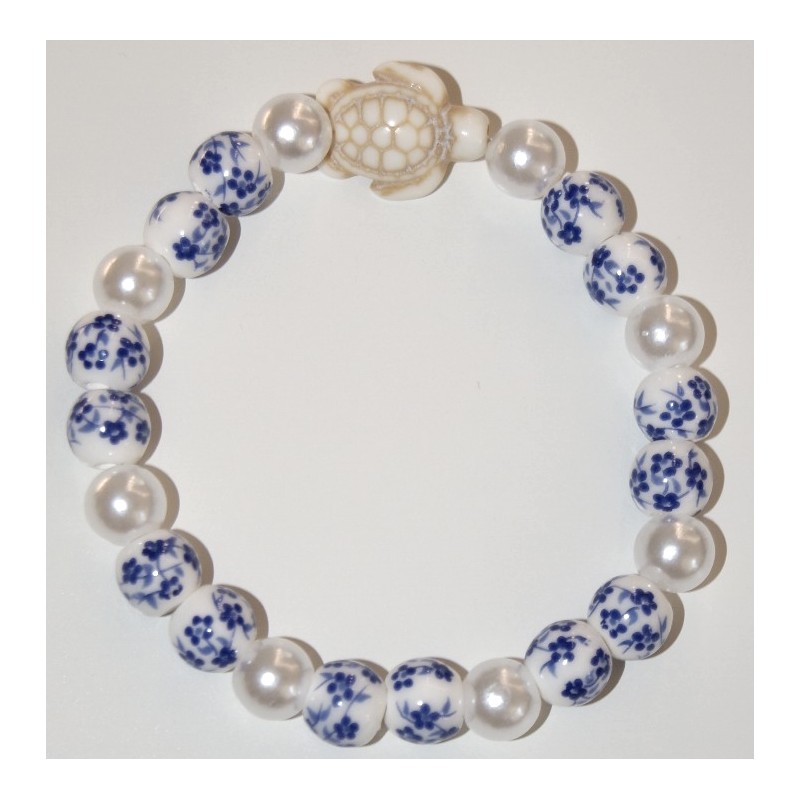 Composition: Perle de tortue de mer, perles en céramique Bleu, perles blanches artificielles.
