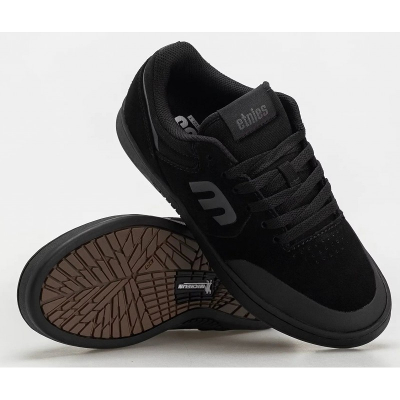 Etnies s’est associée à Michelin pour réinventer la semelle extérieure, la rendant au minimum 3 plus durable qu'une semelle classique. La chaussure est dotée d’un embout en caoutchouc fusionné, de boucles de lacets cachées, d’une languette et d’un col rembourrés, ainsi que d’une semelle intermédiaire en mousse STI Evolution pour la protection contre les chocs.