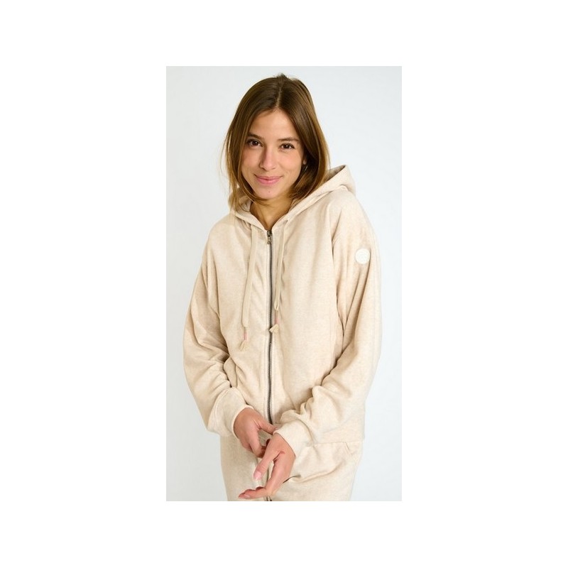 Veste zippée à capuche beige IVY MONROE. Découvrez notre veste à capuche zippée pour un look décontracté. Sa coupe oversize avec ses emmanchures basses vous apporte une liberté de mouvement et un confort optimal. Confortable, elle est votre partenaire idéale pour une soirée cocooning à la maison ou pour une balade en ville.