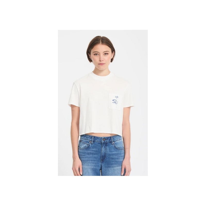 Tee Shirt Femme VOLCOM Pocket Dial Vintage White